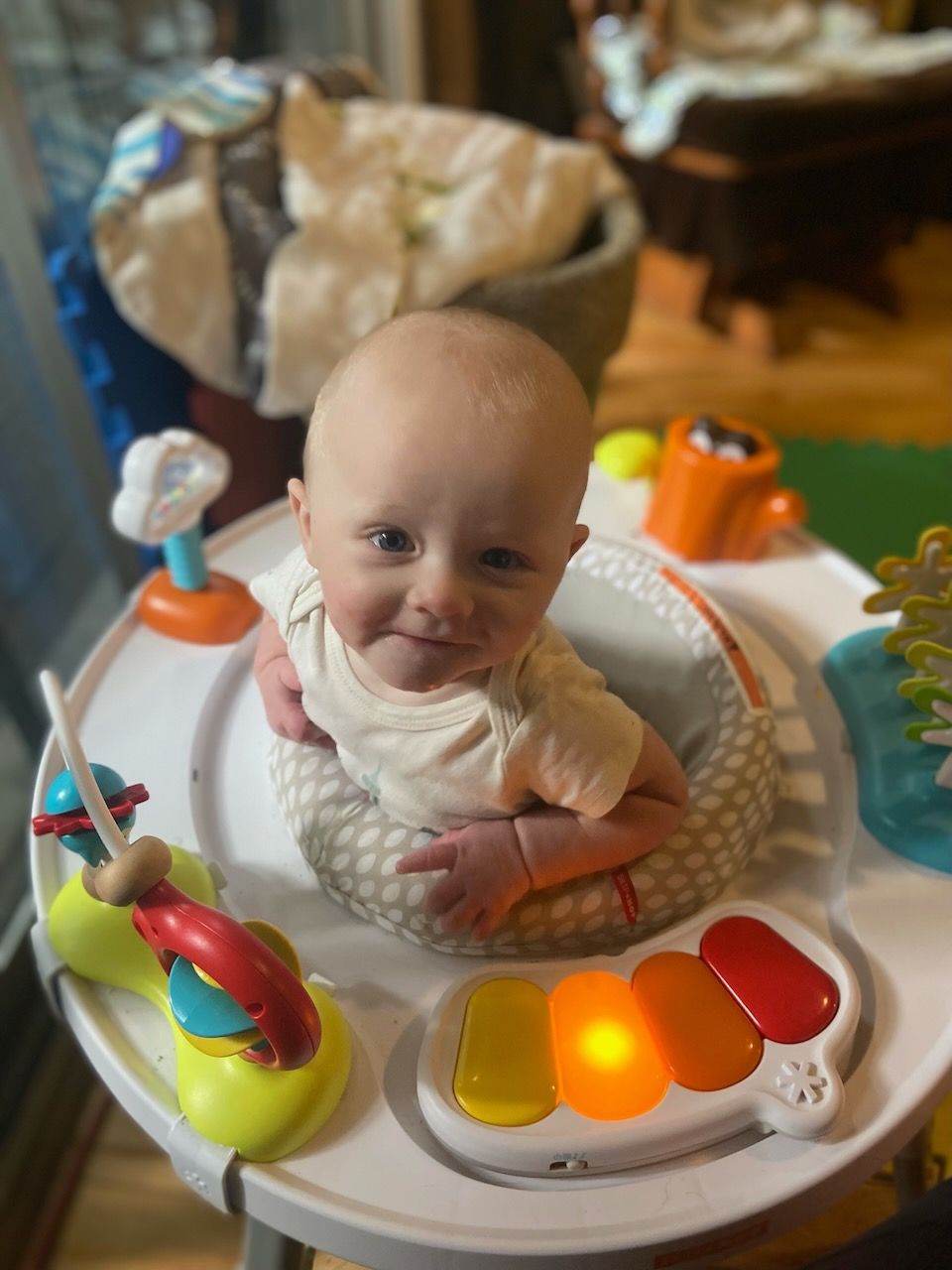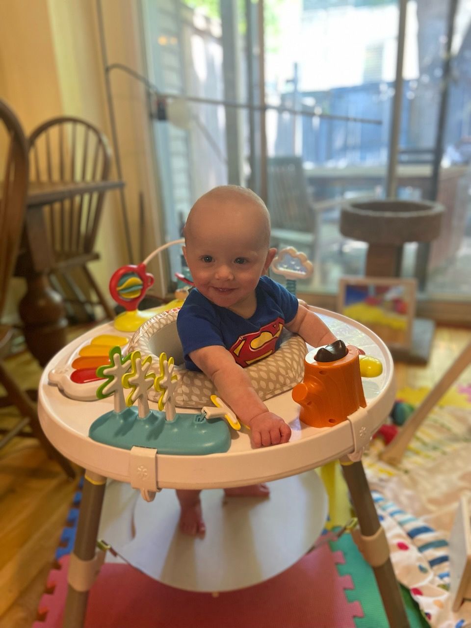 But luckily, the stand-up activity centre we got him for home was an even bigger hit than the one he tried beforehand. He'll play in this thing for upwards of 30 minutes, which is a significant amount of time for a baby. Think of 30 minutes in terms of a percentage of their life lived so far. It's pretty huge.